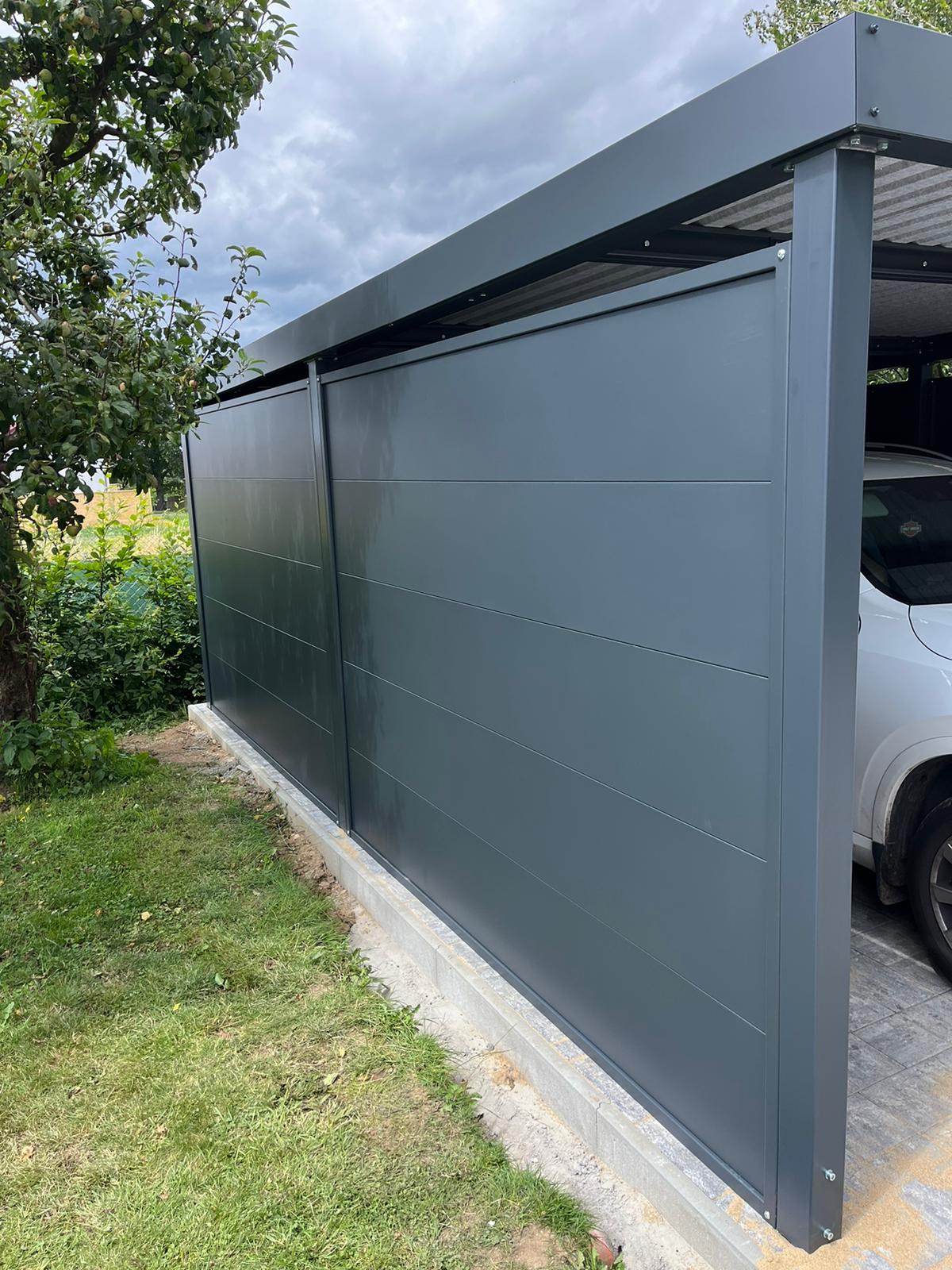 Konstrukci lze doplnit o výplně (ocelový plech, designový plech, polykarbonát, dřevěné latě) či vytvořit přímo box, který bude součástí carportu, např. pro uložení zahradního nářadí, dílny, apod. Součástí mohou být také sekční vrata.
